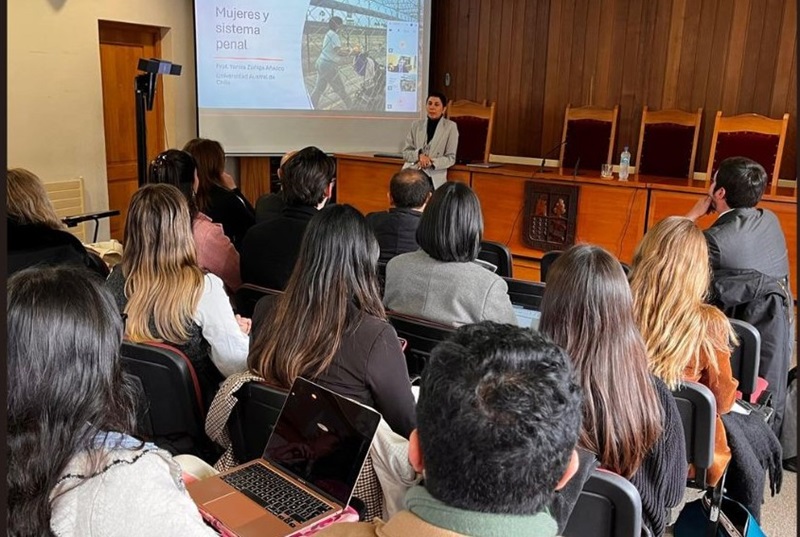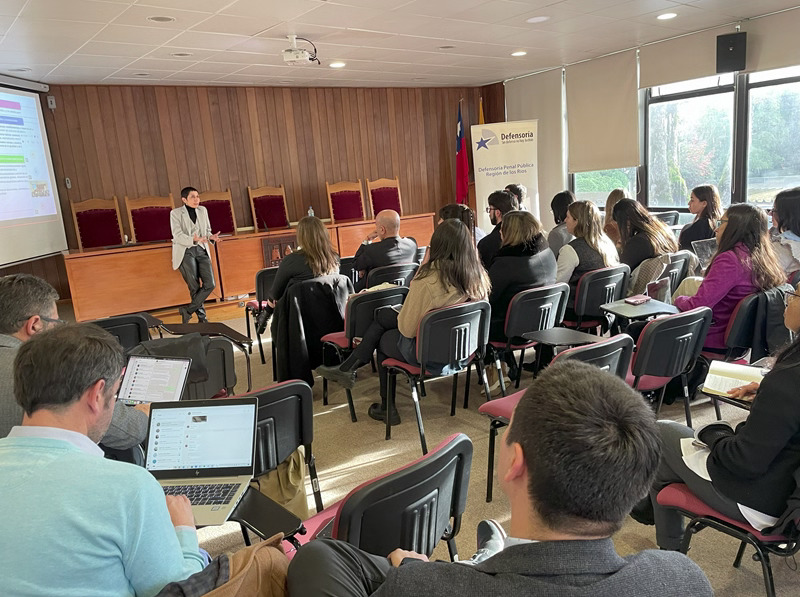 En la sala de plenarios de la Facultad de Ciencias Jurídicas y Sociales de la Universidad Austral de Chile, en Valdivia, defensoras y defensores públicos de Magallanes, Aysén, Los Lagos y Los Ríos participaron en la capacitación “Derechos y garantías de mujeres privadas de libertad: criterios y estándares para una defensa con perspectiva de género“, a cargo de la profesora de esa facultad, Yanira Zúñiga Añazco.