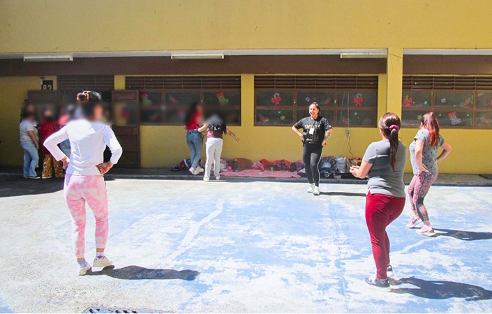 A propósito del “Día internacional de la eliminación de la violencia contra la mujer', el equipo de la Defensoría Regional de Los Ríos organizó un espacio de atención y de recreación con las mujeres que cumplen pena privadas de libertad en el Complejo Penitenciario de Valdivia. El equipo de defensa pública que brindó atención personalizada a las mujeres estuvo integrado por el jefe de Estudios regional, Juan Pablo Alday, la trabajadora social penitenciaria, Vanessa Villarroel, la encargada de apoyo a la defensa, Karin Schmidt, la defensora (s) Yaritza Flández y las postulantes en práctica profesional y futuras abogadas, Cindy Reyes y Vanessa Fonseca. Además de helados para las internas en una muy soleada tarde en el patio del módulo 82, el equipo gestionó una clase de zumba a cargo de la instructora Carolina Imilqueo, momento que fue muy celebrado por las internas.