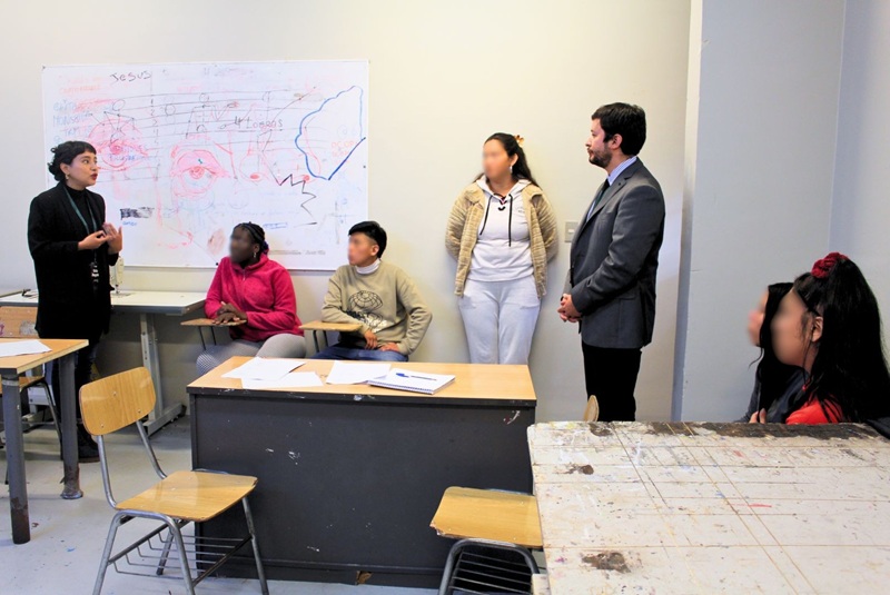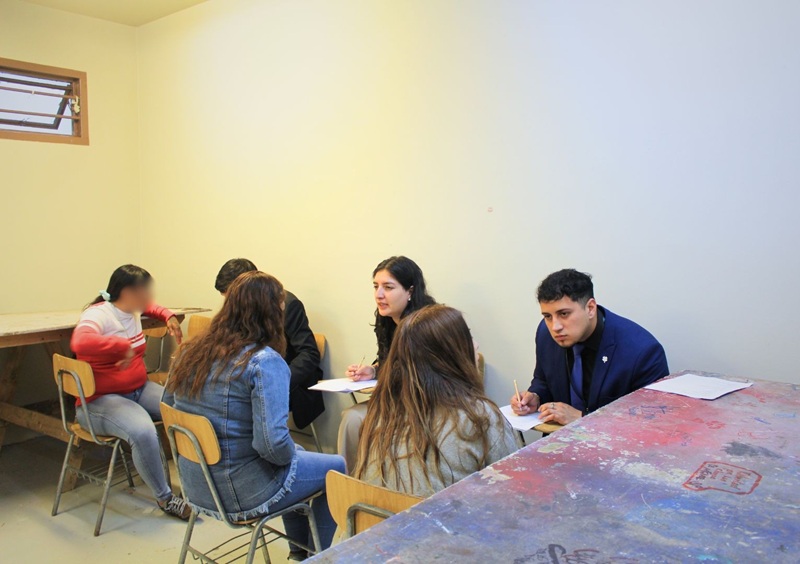 La defensora pública penitenciaria Patricia Cuevas Suárez y el jefe regional de Estudios de la Defensoría, Juan Pablo Alday Blanc, conversaron sobre derechos penitenciarios con mujeres que cumplen pena privadas de libertad en el Complejo penitenciario de Valdivia. Además de los dos abogados, atendieron consultas particulares la y los licenciados en derecho en práctica profesional en la Defensoría Regional de Los Ríos Cindy Reyes Muñoz, Kevin Quezada Espinoza y Pablo Acuña Torres