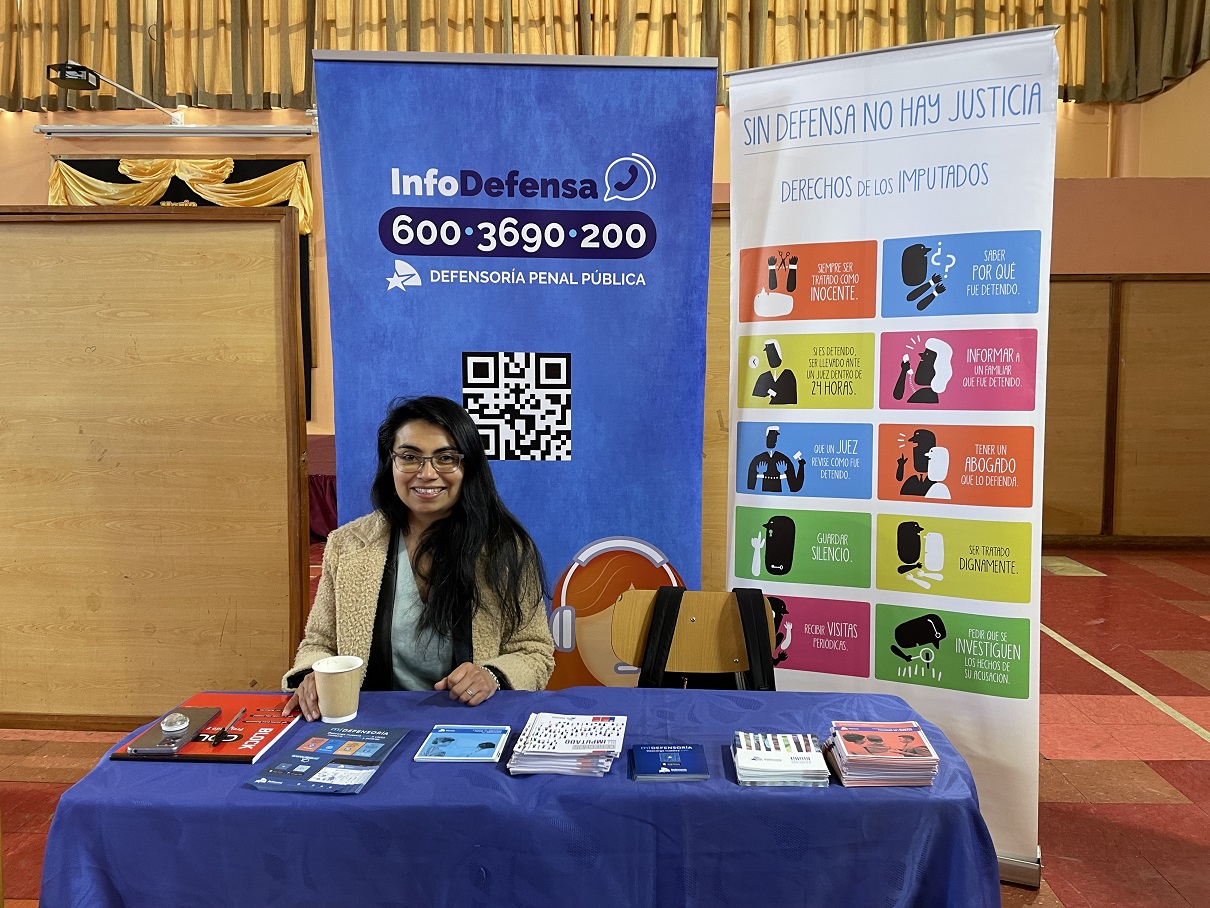 La abogada Marcela Tapia atendió consultas de la comunidad en el gimnasio de la escuela "Laura Vicuña", de la población "Yáñez Zavala", en Valdivia.