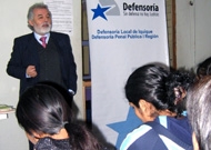 En el encuentro, Arturo Zegarra reseñó las principales funciones de la institución e instruyó sobre los casos que están en el ámbito de la justicia penal y la importancia que tiene asegurar la defensa de los que resultan involucrados en un conflicto penal. Uno de los temas que más les llamó la atención fue el conjunto de derechos que tienen los imputados, entre ésos a la atención de un defensor penal público que, para las personas con ingresos económicos mínimos, es gratuita.